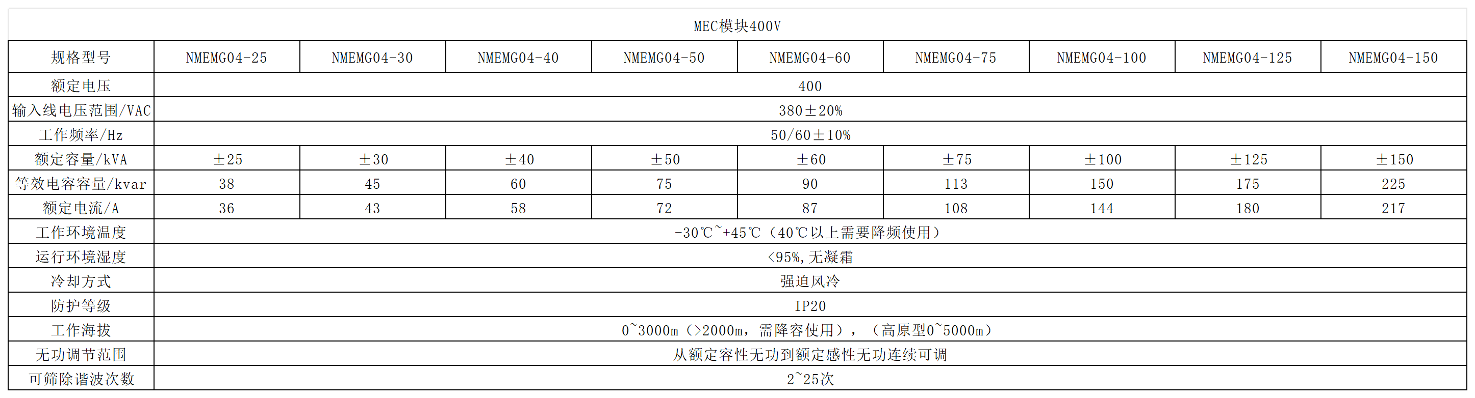 | 產品 | 新能動力MEC模塊 | TSC+APF | 其他SVG+APF |
